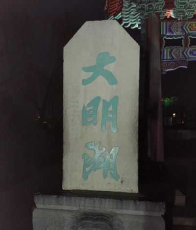 关于趵突泉的“突”字少一点,大明湖的“明”字多一横的解读,济南民间通常是关联在一起的,最流行的说法是:趵突泉三股水的流势太大,把那一点给冲走了,然后流到大明湖里,所以“明”字就多出了一横……