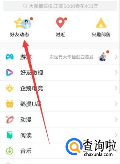 进入之后,点击“好友动态”,进入下一页面,如图所示。