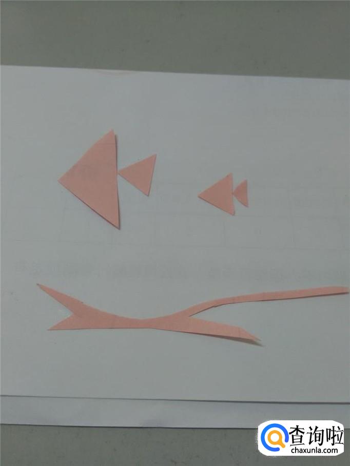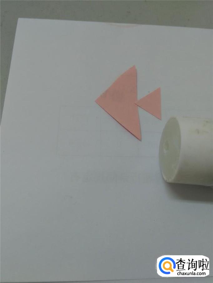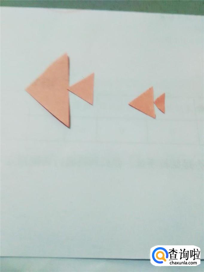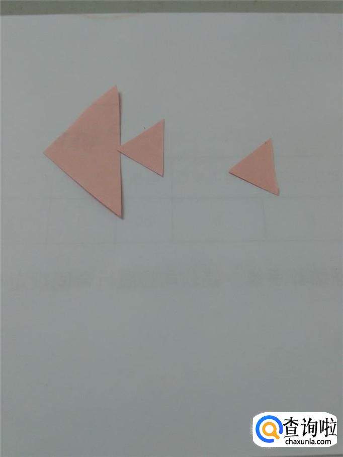 再把一个小些的三角形粘在大三角形的右边,当作燕鱼的尾巴。