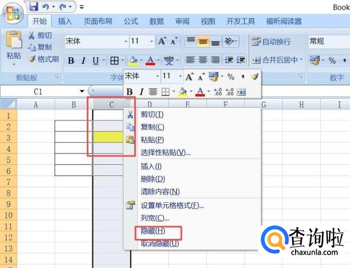 我们选中黄色单元格的那一列,然后右击选择隐藏,我们就看到该列被隐藏了;
