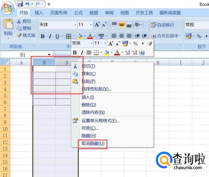 取消的话,我们选择2和4列,然后右击选择取消隐藏;