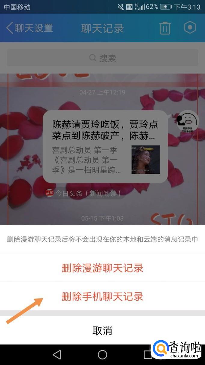 最后就会出现删除漫游聊天记录,和删除手机聊天记录,选择任何一个都可以。