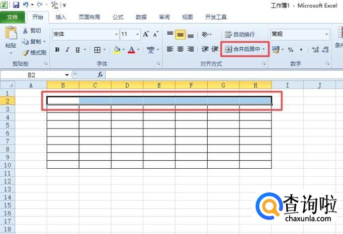 之后我们选中图示中的区域,然后我们点击合并后居中;