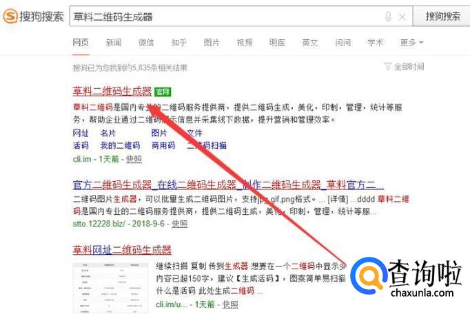 打开电脑,进入搜狗浏览器搜索“草料二维码生成器”