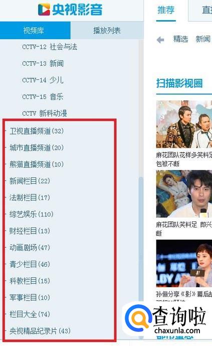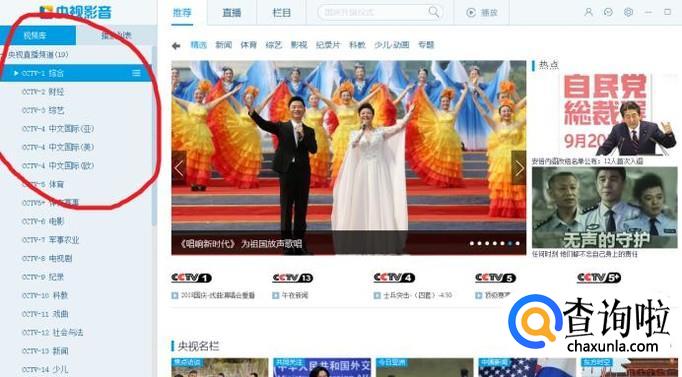 运行“央视影音”播放器,在左侧栏内,可直接点击选择央视节目,收看直播,全都是高清的呦!