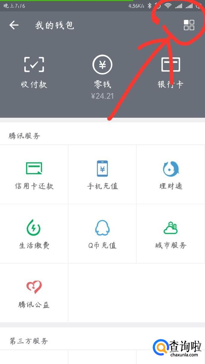 首先打开微信,点到“我”的那个界面(如图一),然后点击“钱包”那个选项进入界面,进入之后就点击右上方的那个小图标进入下一个界面。