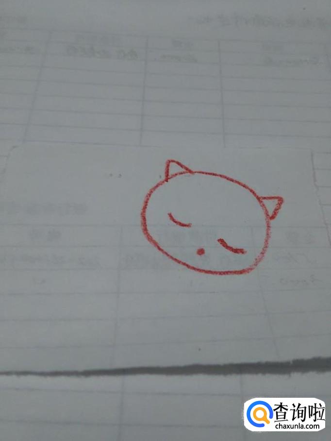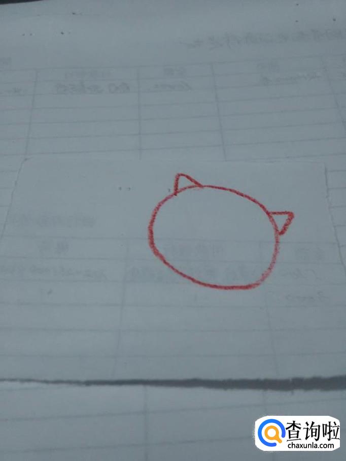 先用笔在纸上画一个椭圆形,表示小猫的头。