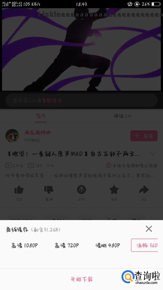 再缓存时,可对缓存视频的画质进行设置,设置完点击开始缓存即可。