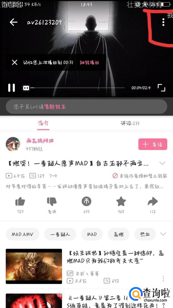 点开该视频后,不要将视频点为全屏,竖着即可,再点击其右上方三个竖着的小点。