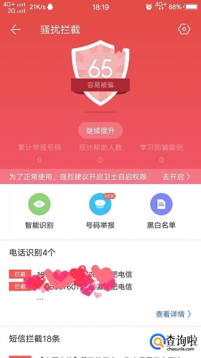 然后,我们在首页点击“骚扰拦截”,再点击右上角的设置的图标。