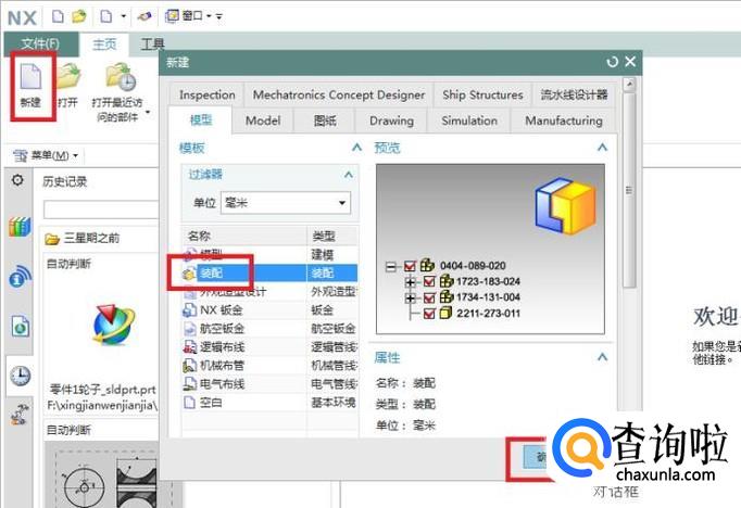 如下图所示,打开UG10.0软件,新建一个“装配”文件。