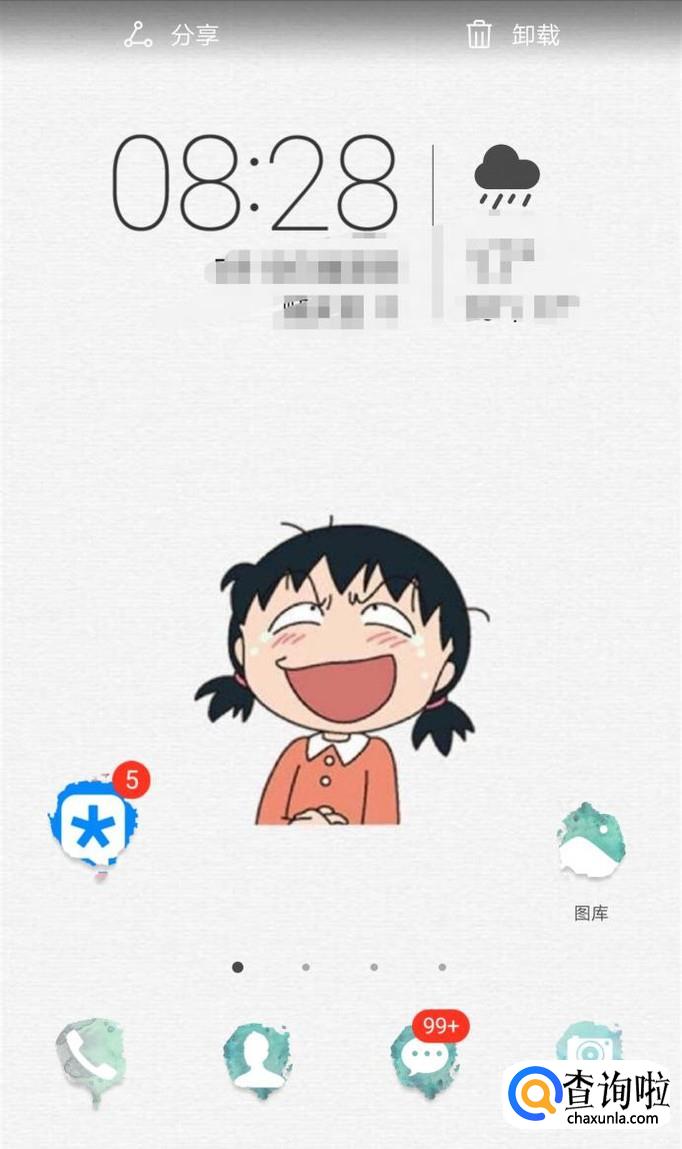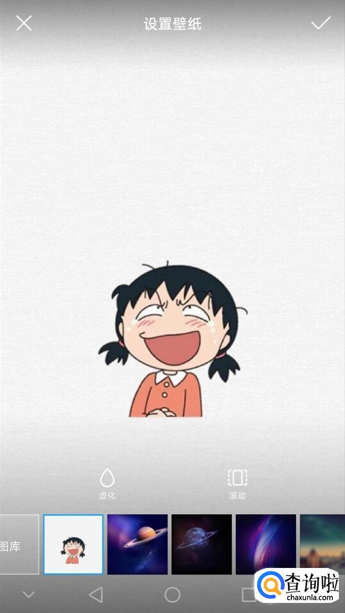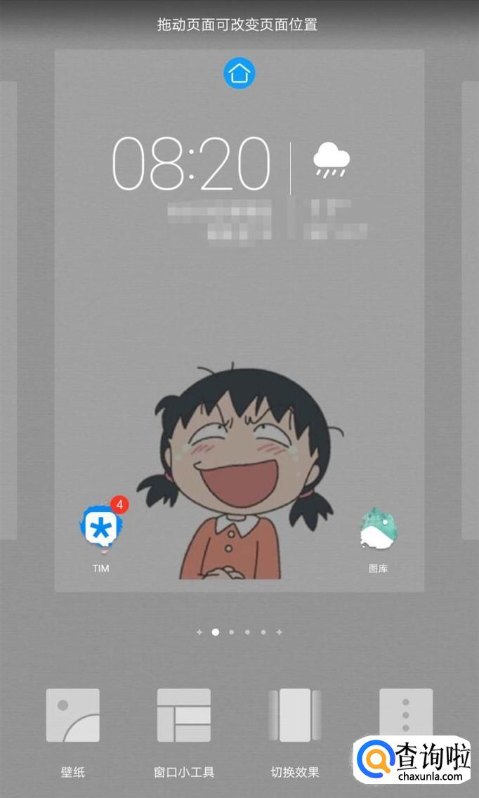 点击最左边的“壁纸”,就可以对你的手机主页设置壁纸。(可以用自带的,也可以上传你图库中的照片)
