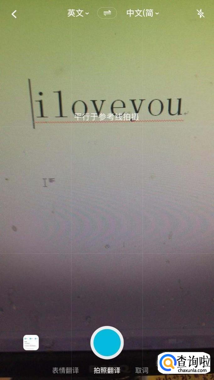 接着对着英文拍照,如下图所示。
