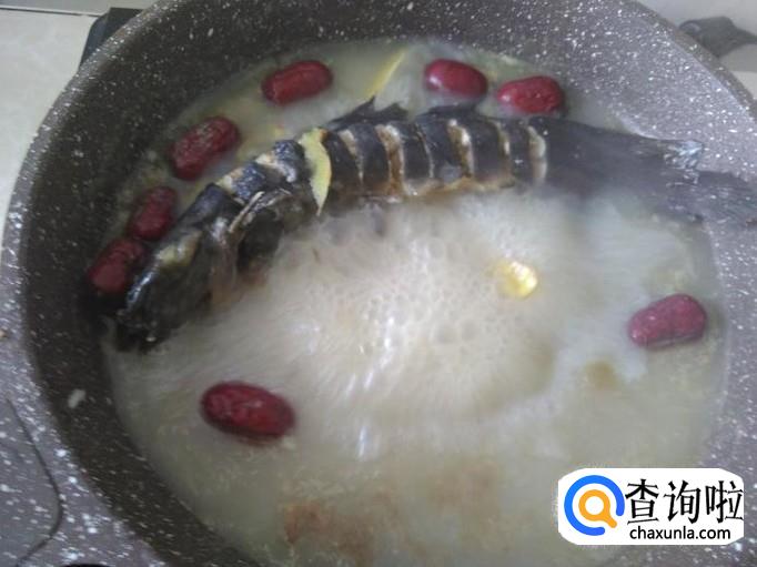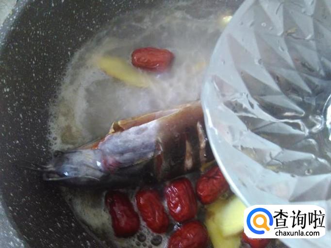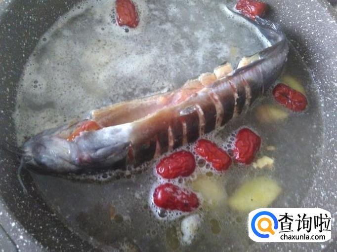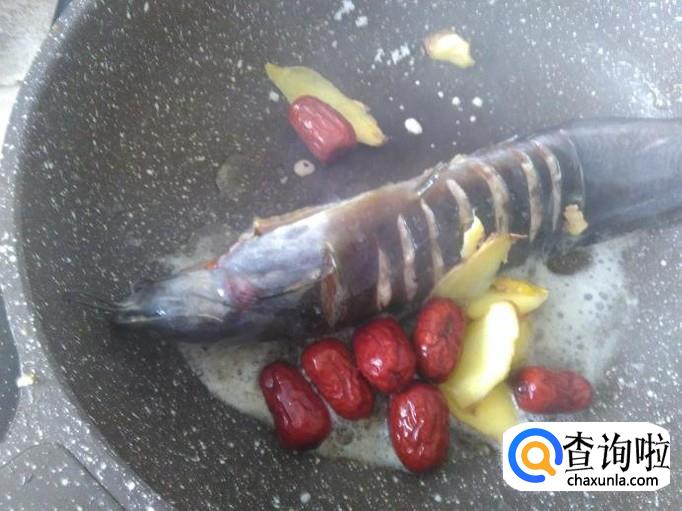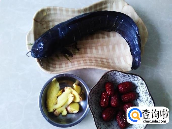本地塘角鱼1条,红枣20克,姜片、料酒适量。