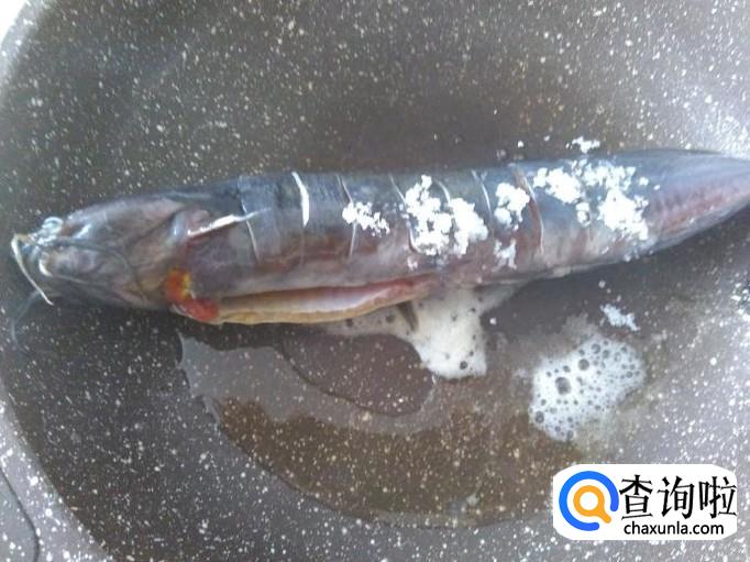 塘角鱼内脏清出来洗干净,在鱼面打一条条深痕