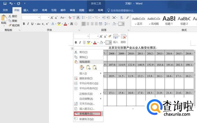 打开Word文件,选中表格,点击右键,选择“表格属性”。