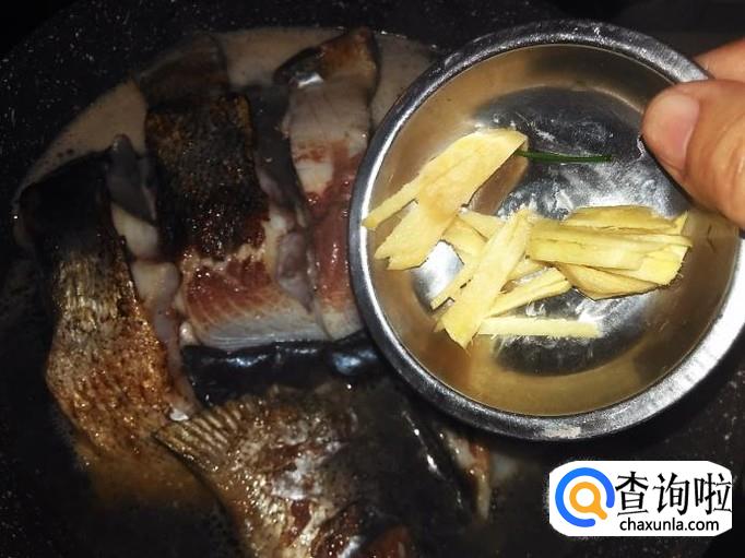 然后加1碗水,再加姜丝进去。