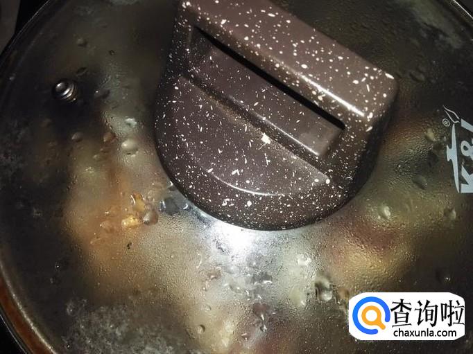 加1勺料酒盖上盖子大火煮沸转小火焖。