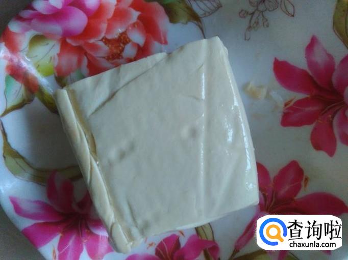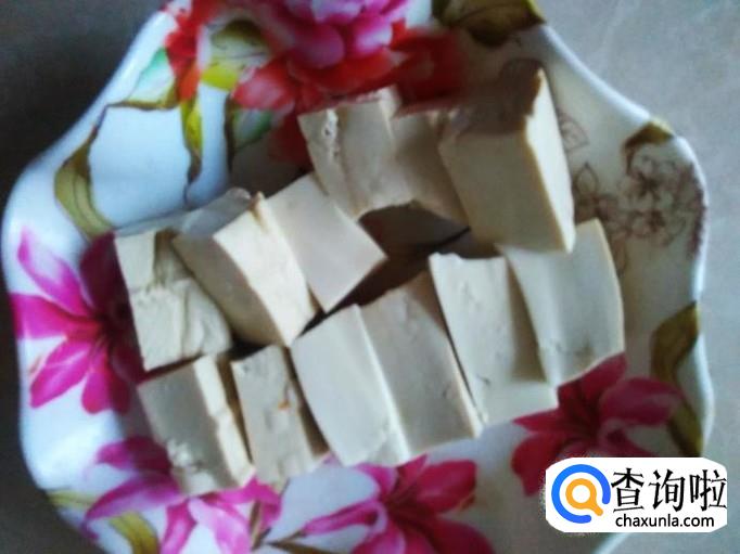 把水豆腐切成小砖。