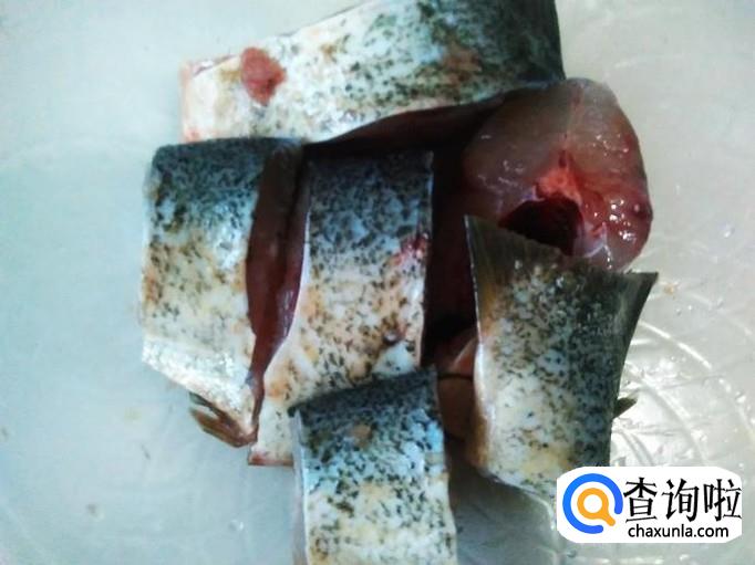 河鱼把头斩出来,然后把鱼清理干净,再切成一块块。