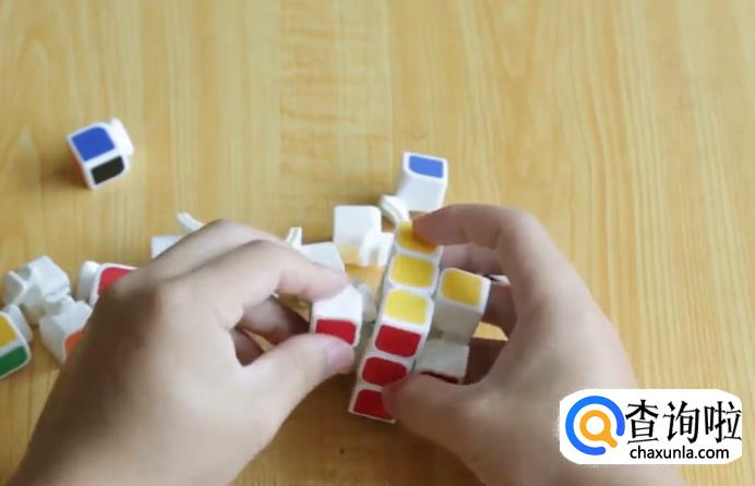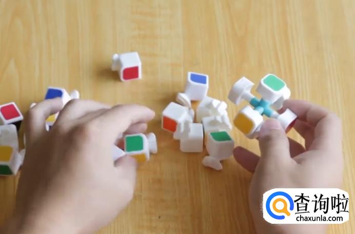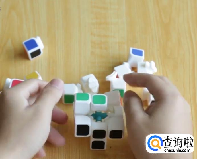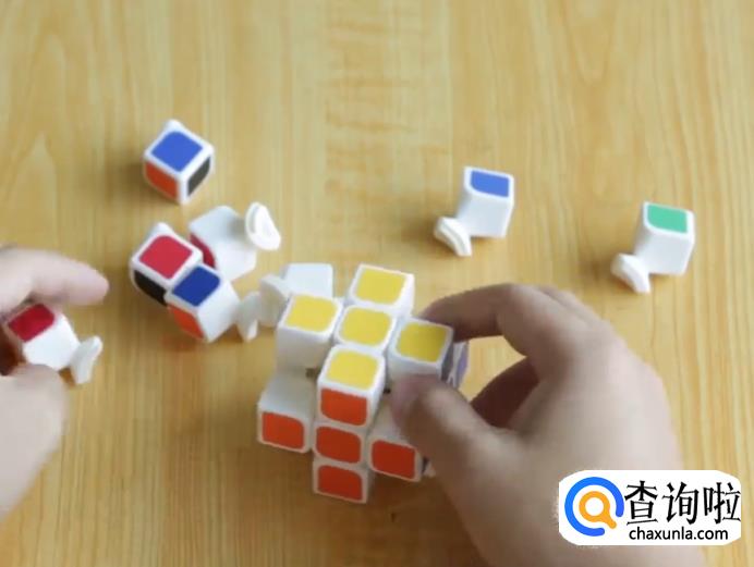先拼装中心块,由于位于魔方的中心,故魔方拆下来的小方块中,只有一面有颜色的必须是魔方中心块。