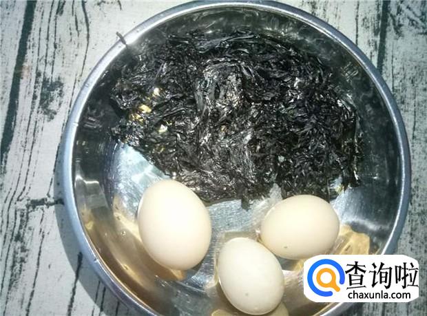 紫菜提前用水泡好,中途更换两次水,这样可以把紫菜里面的沙子给清洗干净。