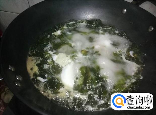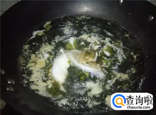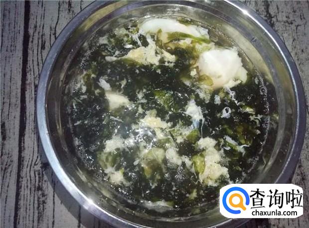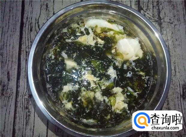 几个人喝汤就加入几碗水,水开后加入紫菜,紫菜煮出味道了,再放鸡蛋,这样汤会比较好喝。