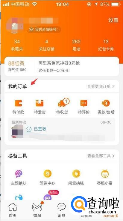 首先我们登录手机淘宝后就进入个人页面然后点击全部订单。