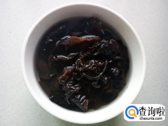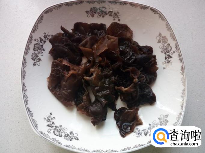 用温水快速泡发木耳,把泡发好的木耳,收拾清洗干净,攥干水分,备用。
