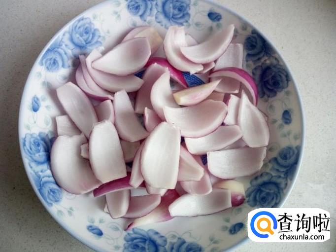 圆葱去皮,用水清洗干净,控干水分,切成片,备用。