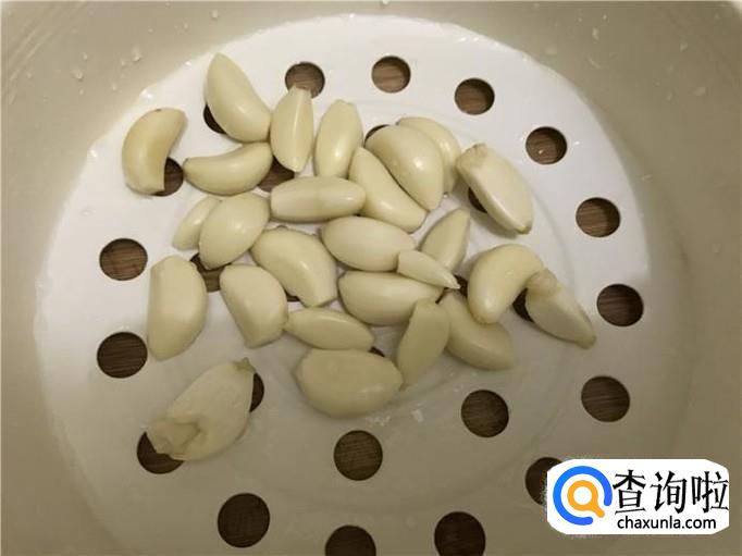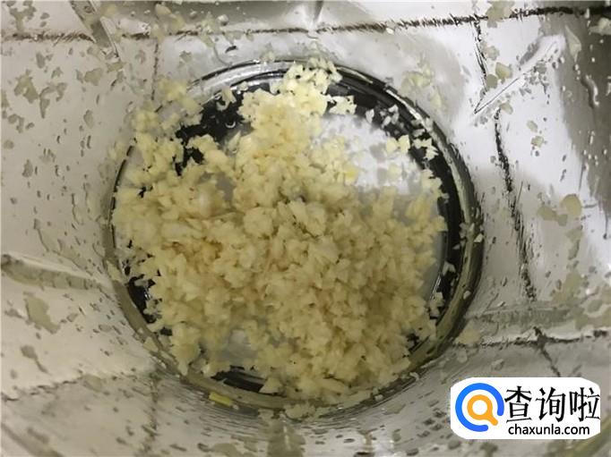 处理蒜头。想让这个蔬菜卷更有味道的话,就需要放入一定量的蒜头,这是非常重要的。将蒜头剥掉皮以后,再放入绞肉机中搅拌,这样会省下很多事情的。