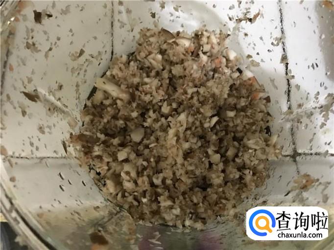 准备香菇。做这道蔬菜猪肉卷,放点香菇是非常好吃的,将香菇用水泡开,这样会更嫩一些,然后切成片,放入绞肉机中搅拌,这样也能很快就变成末了。