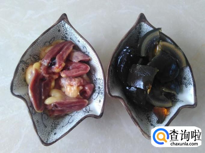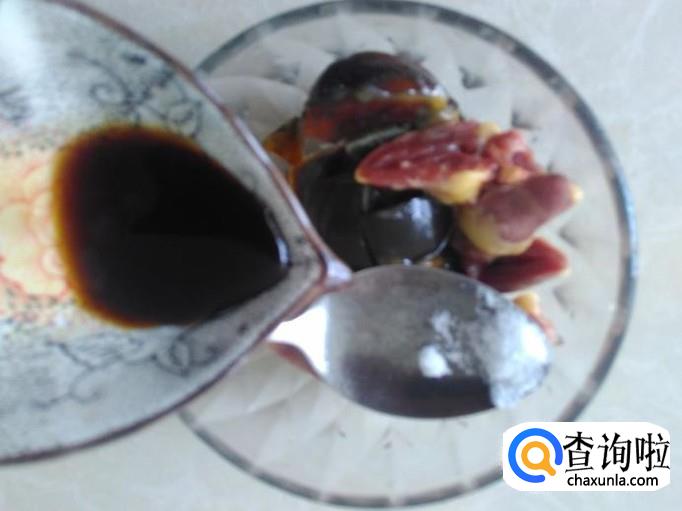 皮蛋1个,鸡心50克,姜蓉适量,生抽1勺,料酒1勺。
