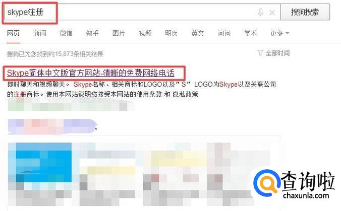 首先,我们打开我们电脑上面的浏览器,然后我们在里面输入skype注册,之后我们按回车键,弹出的界面,我们点击官网;