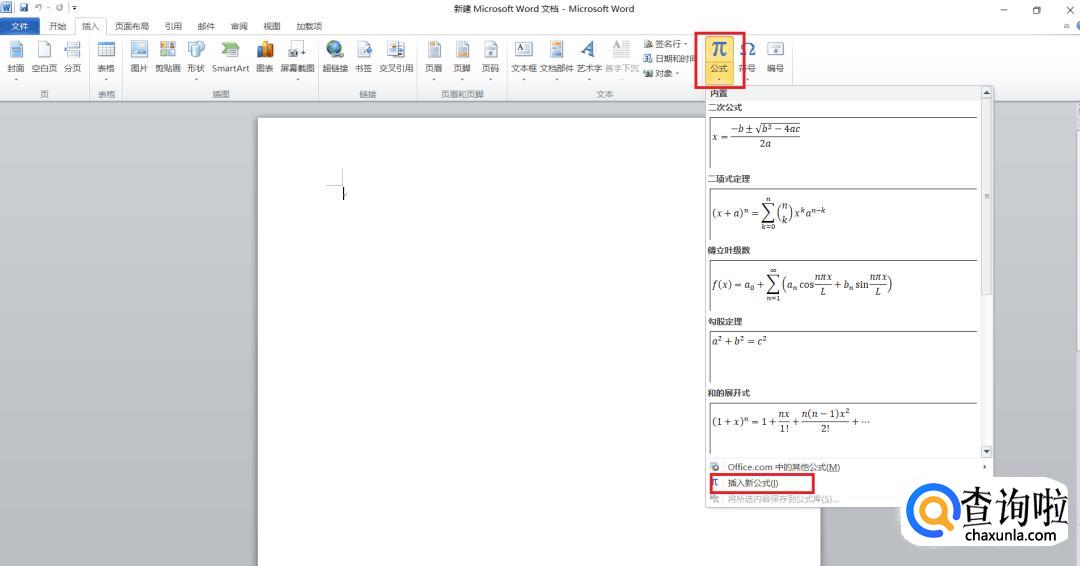 选择“公式”,点击“插入新公式”。
