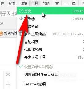 在弹出的下拉菜单中再点击“历史”;或者是直接按下快捷键:CTRL+H;打开历史记录的界面。