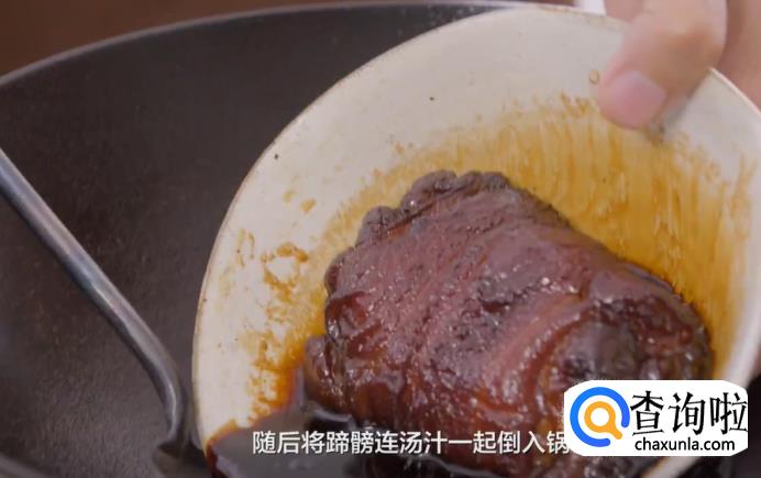 随后,将蹄髈连同汤汁一起倒入锅中,大火烧开,等汤汁变得浓稠的时候即可关火。