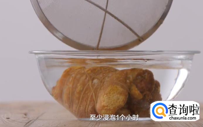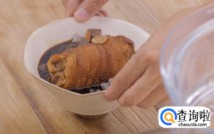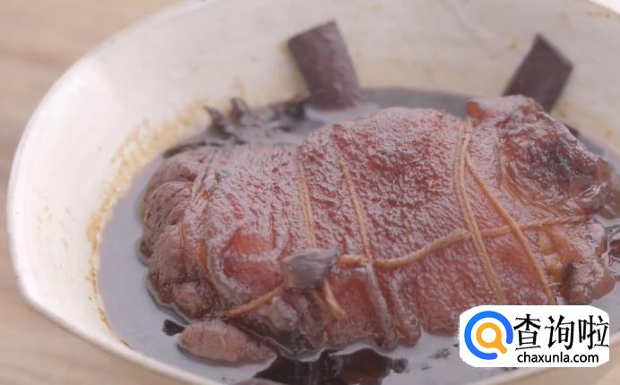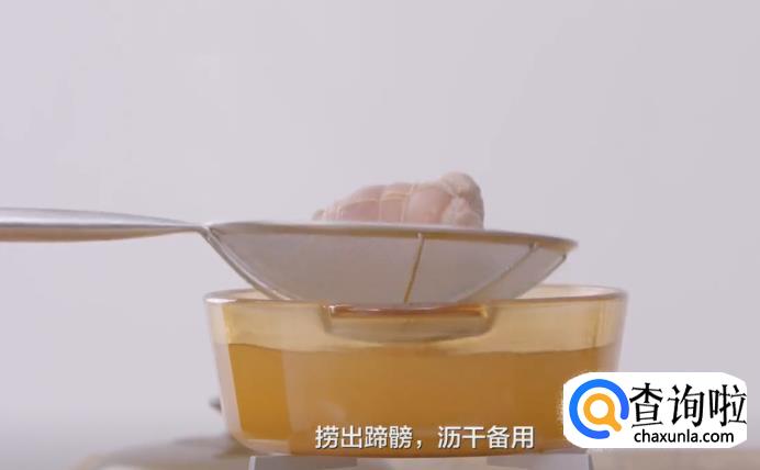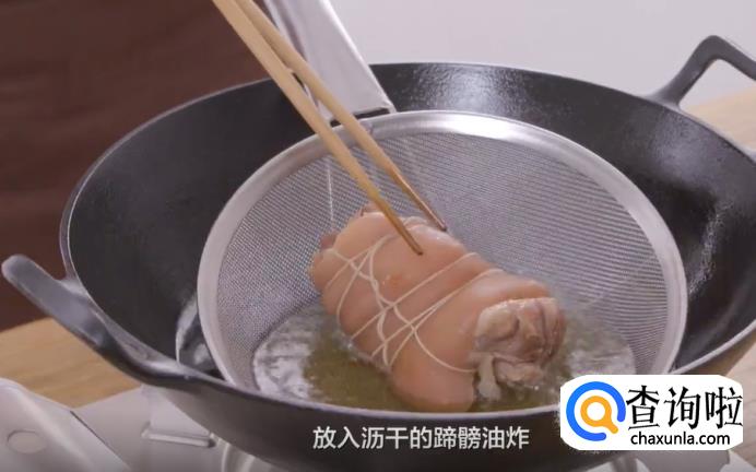 1、拆股的蹄髈要用绳子把它固定好,因为在油炸的过程中它会缩,一缩外形就不美观了。