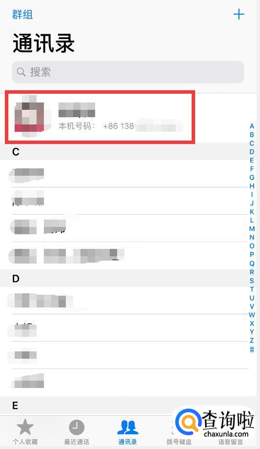 在通讯录顶部,就能看到本机号码了。