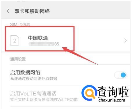 进入后直接就能看见自己手机卡的运营商和手机号了。