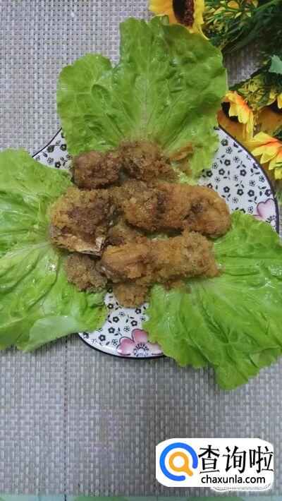 盘中放入几片生菜,将沥干油的鸡翅和排骨放入盘中,撒上适量椒盐粉,孜然粉,辣椒粉,喜欢吃酱的,还可以挤上番茄酱或者黑椒酱,非常美味。我喜欢用生菜叶卷着鸡翅,然后蘸酱吃,荤素搭配,很不错。