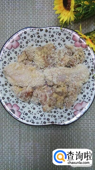 鸡翅适量,排骨适量,盐适量,奥尔良腌料适量,老抽适量,料酒适量,生姜适量,柠檬适量,鸡蛋适量,淀粉适量,面包糠适量。