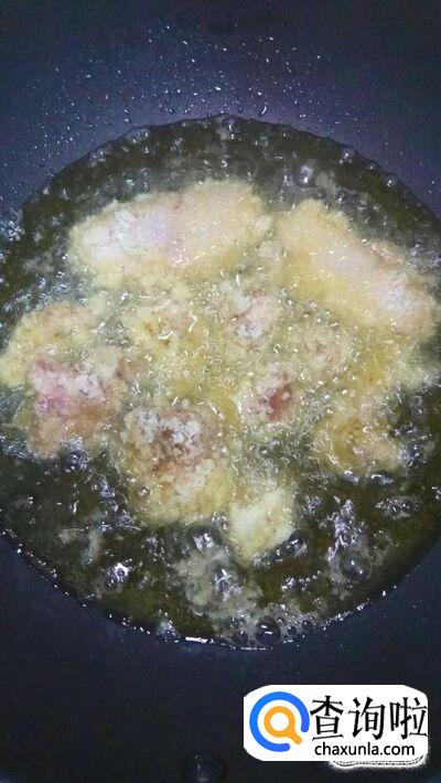 锅中放入适量油,油温五成热,放入锅中,小火慢炸。