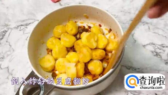 倒入炸好的豆腐翻炒。