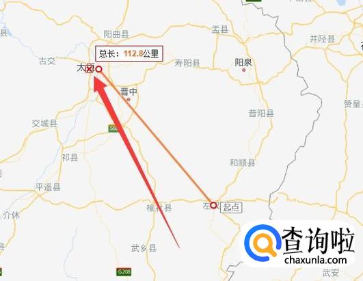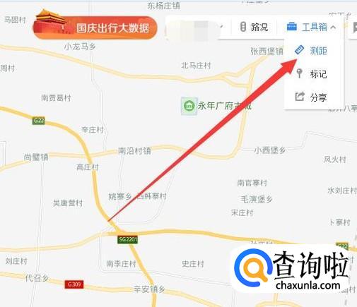 用鼠标点击一下另一地点,即可看到两地之间的距离,如图所示。
