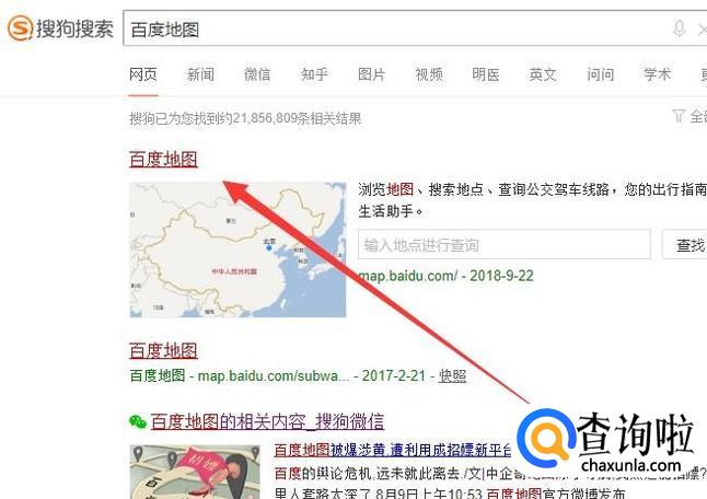 打开电脑,进入搜狗浏览器,搜索“百度地图”,点击并进入,如图所示。