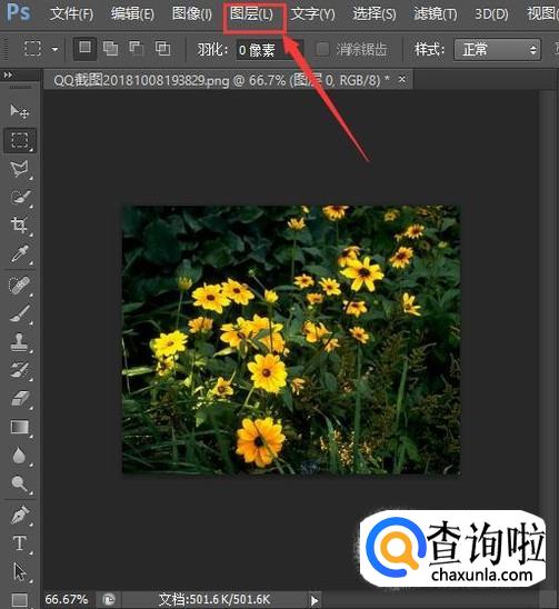 首先,启动PS,打开照片,然后点击图层,新建一个图层,然后将图层填充为黑色,如图所示。
