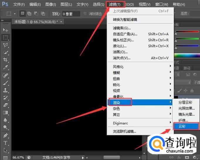 接着,我们在菜单栏下点击“滤镜”,然后在下拉表中点击“云彩”。