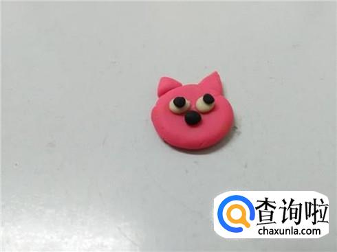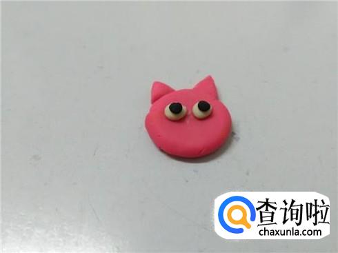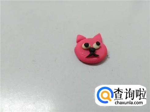 用粉色捏两个三角形,粘在猫头上,当做两个耳朵。