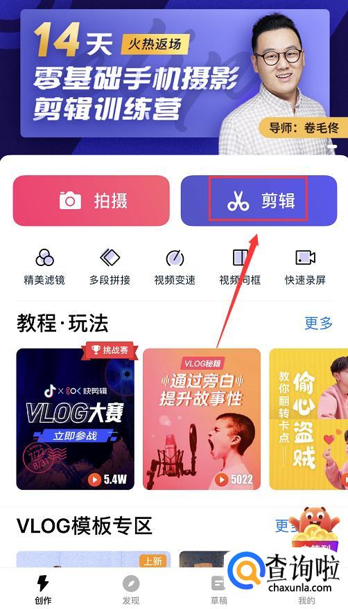 打开app,在首页上找到并点击【剪辑】。